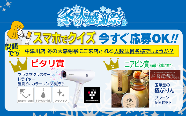 恵那店[サマーセール2025]にご来店いただき感謝申し上げます「ご来店人数予想クイズ」に沢山のご応募ありがとうございました! 結果発表♪ ◎恵那店サマーセール2025のご来店人数は 158名様でした (ご来店以外の予約注文は1名でカウント) お見事!ぴたり賞の方が1名!! おめでとうございます!!!コシヒカリ10kgゲット当選の方には個別に連絡させて頂きますね。次回もお楽しみに♪ 最新の投稿へ 今月の当選番号 FacebooktwitterPocket