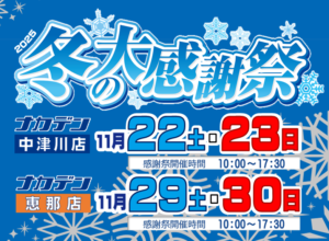 お得意様向けイベント中津川店、恵那店【 冬の大感謝祭2025 】開催します エアコン、洗濯機、テレビ、トイレ、エコキュートなど 特価品多数準備中体験コーナー、来店記念品、お買い上げ記念品もご用意しました 皆様のご来店をお […]
